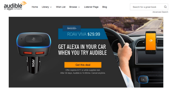 Amazon和Audible方面也极为重视此次合作,在Echo产品主页和Audible官网首页均展示了与Roav联合活动页面,并且Audible将投资数百万美元的站外广告费用来推广这次夏季活动,整体活动预估共完成2亿人次的触。期待Audible和Roav持续在车载领域进行合作探索,为用户带去车载智能语音的更多可能性。
